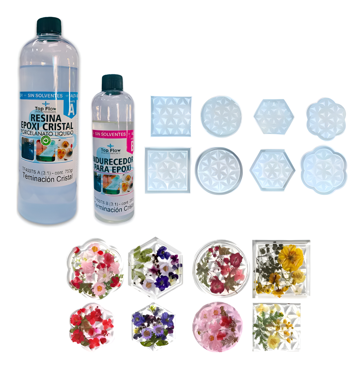 set 8 Molde Silicona Posavaso + 1 kg de Resina 3:1