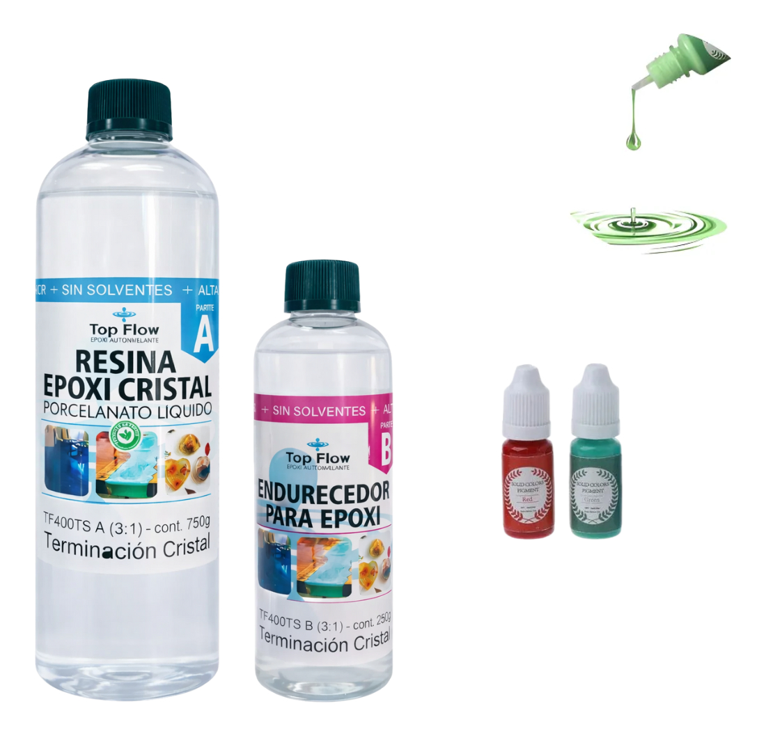 Kit Resina Terminación Cristal Con 2 Pigmentos Líquido 8 ml