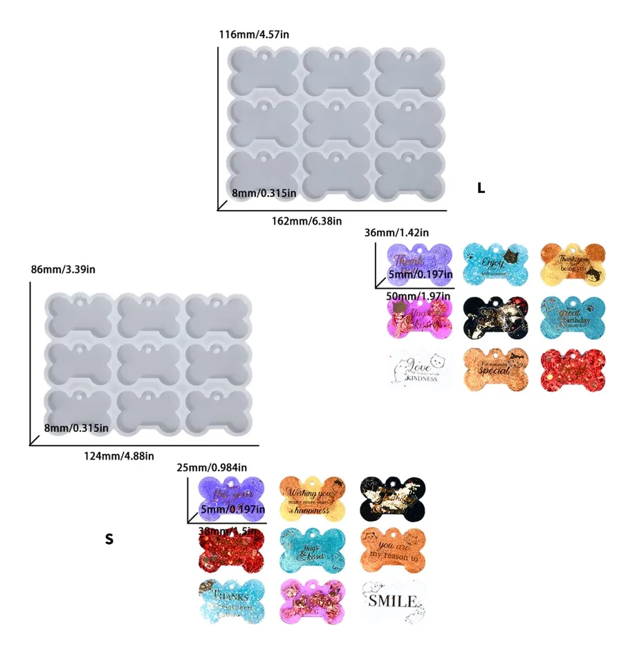 Perfecto para quienes desean personalizar chapitas para mascotas. Se recomienda utilizar resina epoxi y decoraciones a gusto. El molde es reutilizable y fácil de limpiar.
