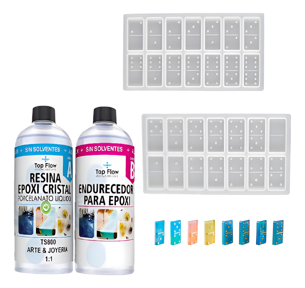 «El kit incluye : 1 kit 600 grs. Resina Arte&Joyeria (A+B) + Molde 4868 DOMINÓ 2 PZAS