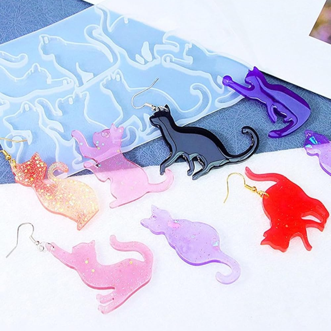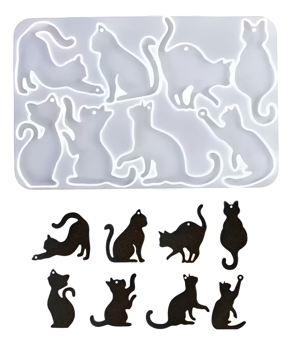 Molde de gato de resina: este paquete de moldes de silicona para gatos incluye 8 moldes de silicona para gatos articulados diferentes, una amplia gama de opciones para adaptarse a sus necesidades creativas.