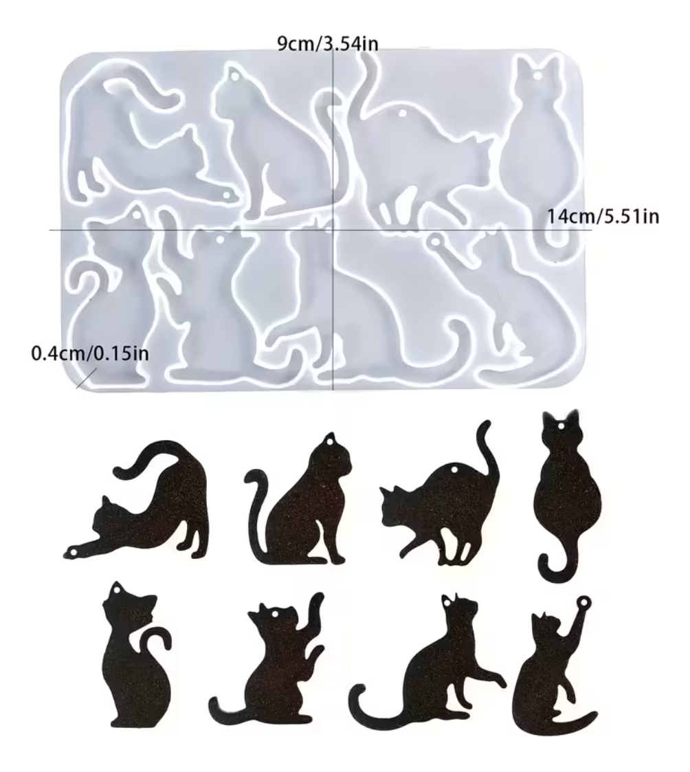 Tamaño: 5,5 x 3,9 pulgadas (13,9 x 10 cm); Estos moldes de gatos son compatibles con una amplia gama de materiales de moldeo, incluidos, entre otros, epoxi, resina UV y resina fundida.
