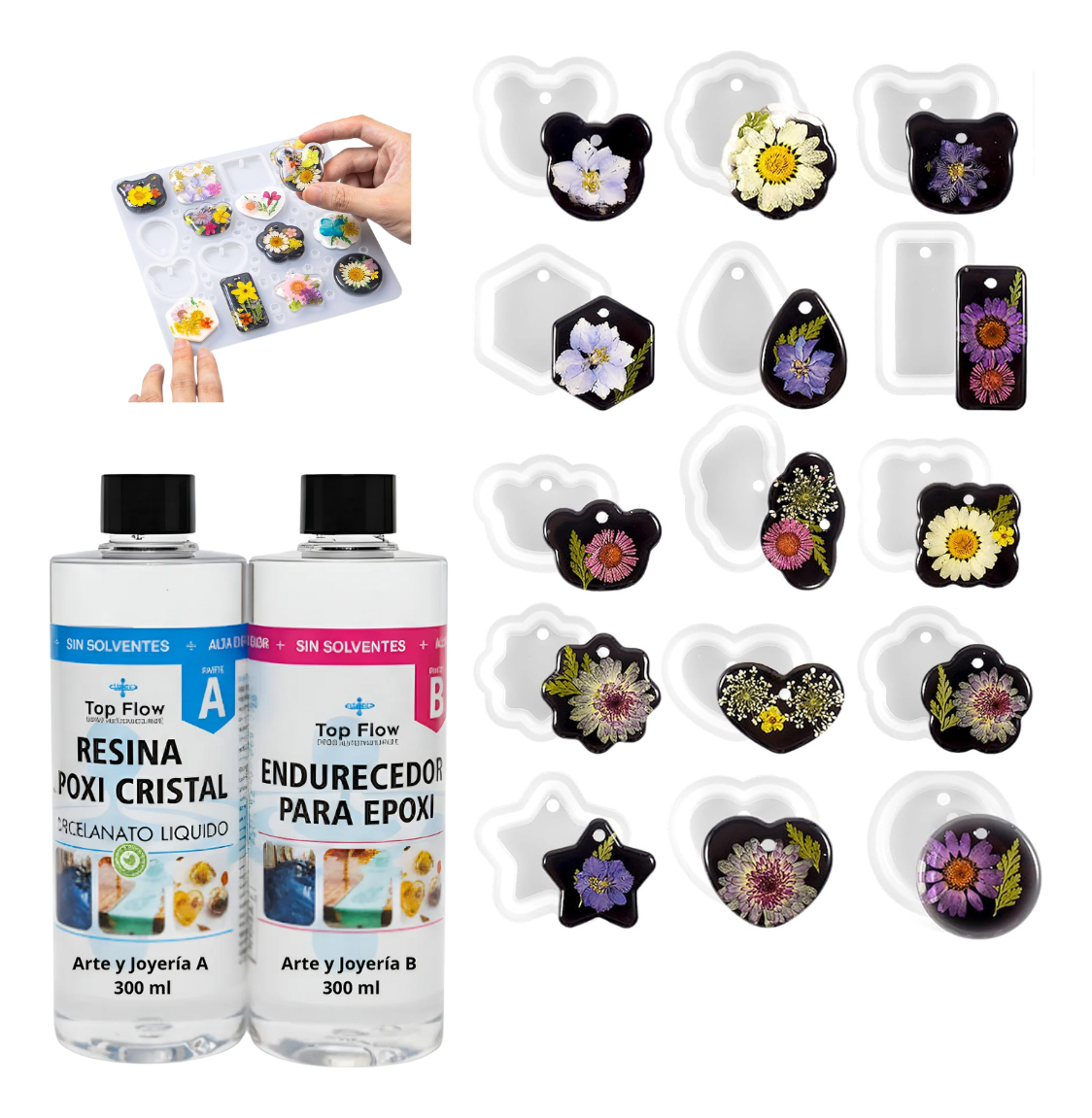 Molde Silicona Llaveros Con Resina Arte 600 Ml 1:1