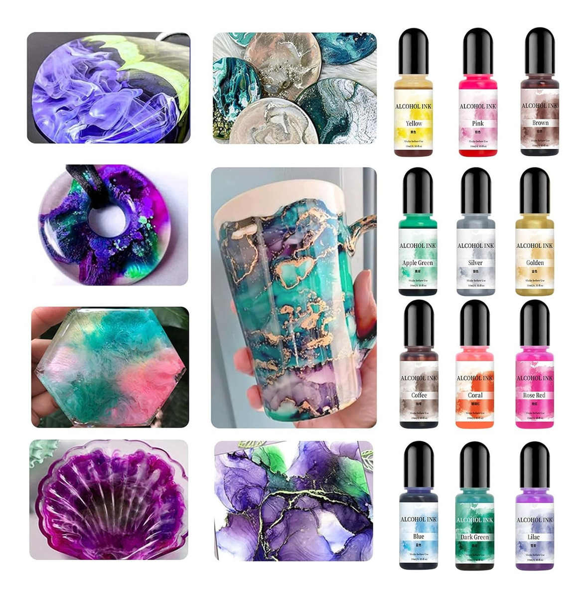 Transforma artículos ordinarios en extraordinarias piezas de arte con estas versátiles tintas; son para crear joyas únicas, añadir encanto a la decoración del hogar o mejorar las obras de arte para exposiciones y ferias de manualidades.