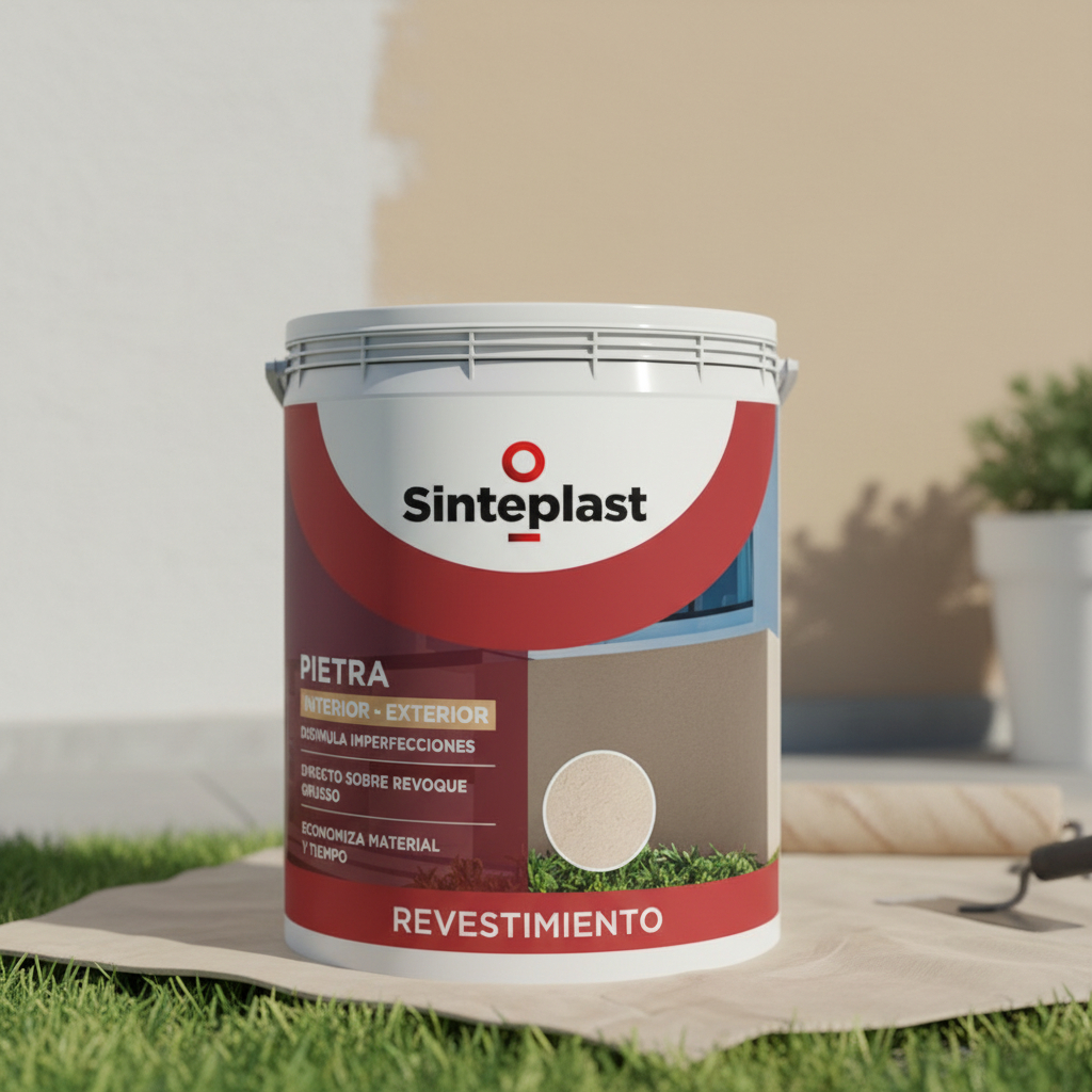 Revestimiento decorativo acrílico, de acabado similar a la piedra natural. Producto elástico y resistente a la intemperie que aplicado en alto espesor protege y decora, sustituyendo al sistema tradicional de revoque fino más pintura. Indicado para interiores y exteriores tanto en obras nuevas como en refacciones.