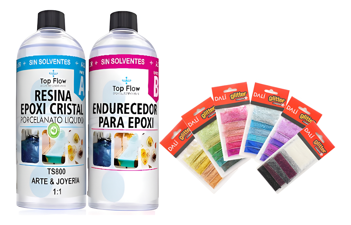Resina Arte & Joyeria 600 Ml + 6 Packs Glitter Degradado