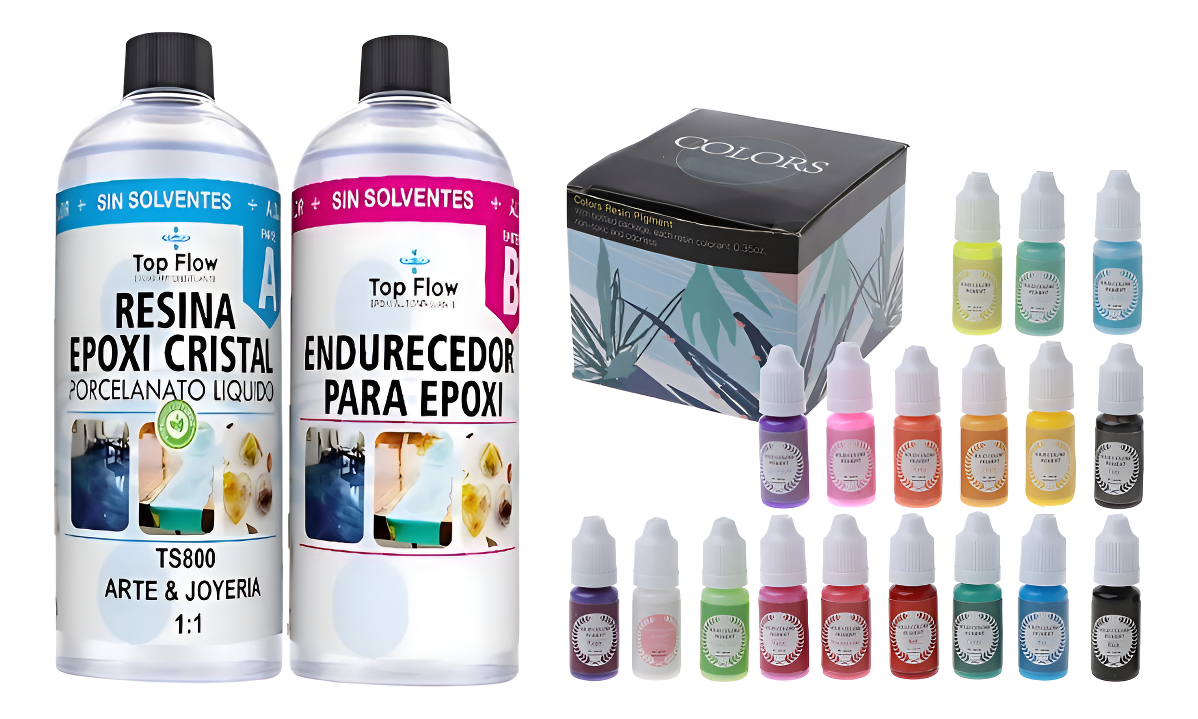 Resina arte & Joyeria 600 ml+ Caja Pigmento Liquido
