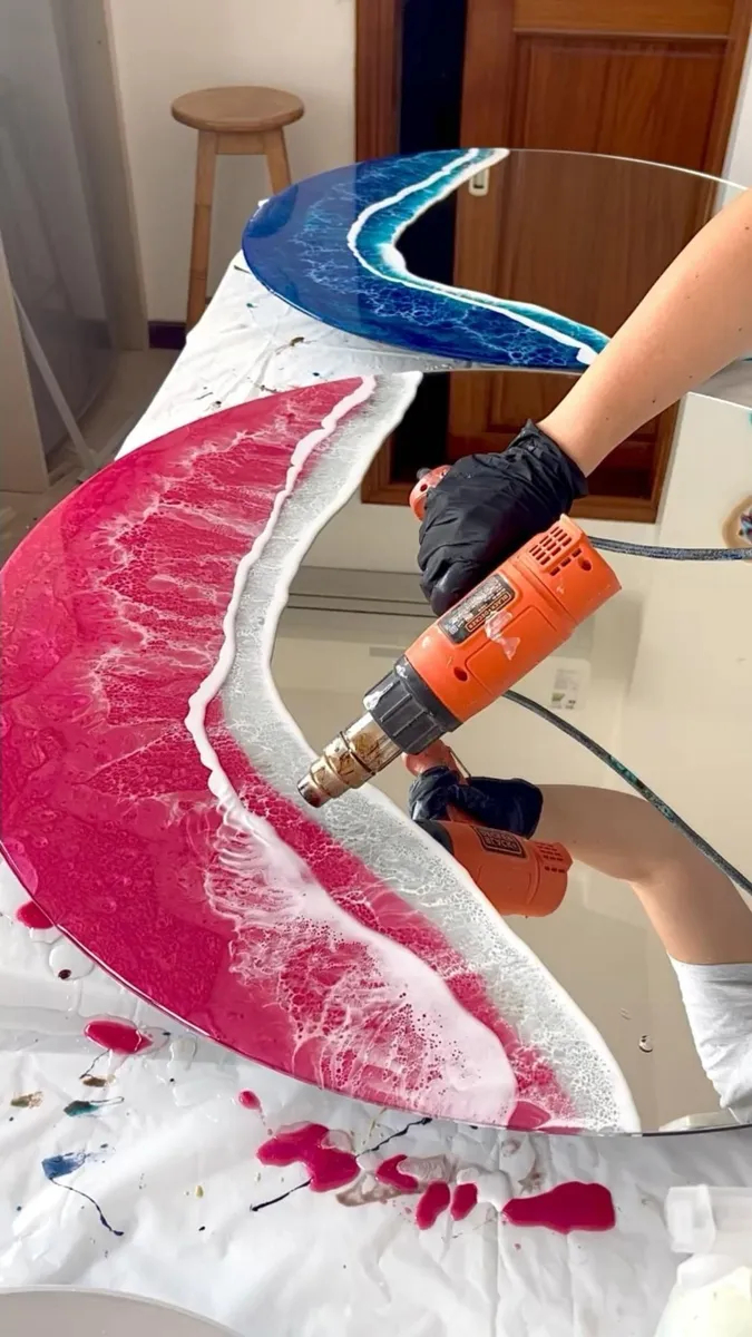 Una vez ha distribuido la capa de Epoxi, utilice una pistola de calor para remover burbujas de aire. En superficies pequeñas puede utilizar Spray Quitaburbujas.