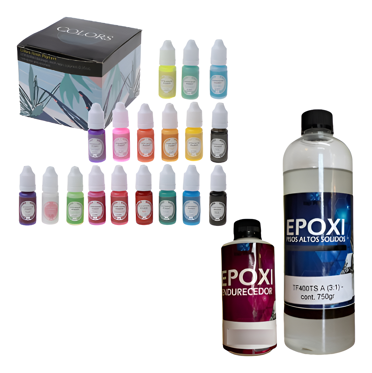 Resina Piso Y Mesada 1kg + Caja Pigmento Liquido